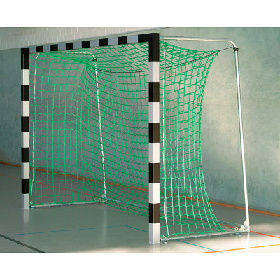 Sport-Thieme Handballtor: Mit Premium-Stahl-Eckverbindung – Gerade im Handballsport werden die Eckbereiche der Tore besonders stark beansprucht und halten oft nicht stand – dieses Problem löst das Sport-Thieme Handballtor mit seiner Premium-Stahl-Eckverbindung. Diese Eckverbindung aus verzinkten Stahl-Laser-Teilen ist nicht nur äusserst passgenau, sondern gibt der Eckverbindung eine bisher nicht gekannte Stabilität und ist Garantie für eine lange Haltbarkeit der Tore. Es gibt keine stabilere Eckverbindung. – Sicherheit nach DIN-Vorschrift – Ein weiterer Vorteil gegenüber den bisherigen Eckverbindungen: keine sichtbaren Verschraubungen an Latte/Pfosten, da die Netzbügelkonstruktion von hinten durch das Torprofil direkt mit den Eckverbindungen verschraubt wird. Die Verankerung der frei stehenden Tore ist nach EN vorzunehmen. Entsprechende Bohrungen sind in den Netzbügeln bereits eingearbeitet. – Weitere Vorteile auf einen Blick: – Hohe Standfestigkeit – Leichter Aufbau durch hohe Passgenauigkeit der Zubehörteile und Bohrungen – Robuste Eckverbindung aus Stahl – Netzbügel aus Stahlrohr und die neue patentierte Eckverbindung geben dem Tor eine bisher nicht gekannte Festigkeit – Mattsilber mit schwarzen, roten oder blauen Kunststoff-Feldern – Inkl. 30 Netzhalter – Netzempfehlungen: – Tortiefe oben 80 cm/unten 100 cm – Leinenstärke 4 mm aus Polypropylen – Leinenstärke 5 mm aus Polypropylen